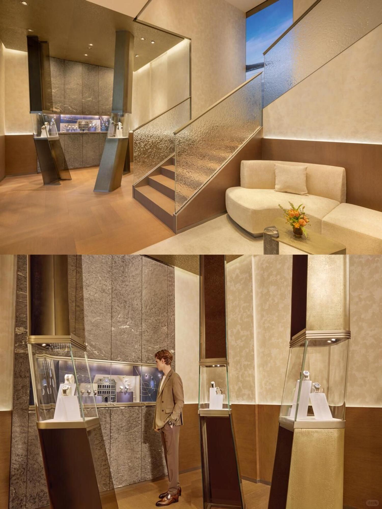 Façades cinétiques, animations LED et "pièces flottantes" rythment la narration horlogère. Colonnes sculpturales, vitrines cristallines et lounge VIP composent une circulation de type galerie qui invite à la contemplation et à la connexion à la marque.