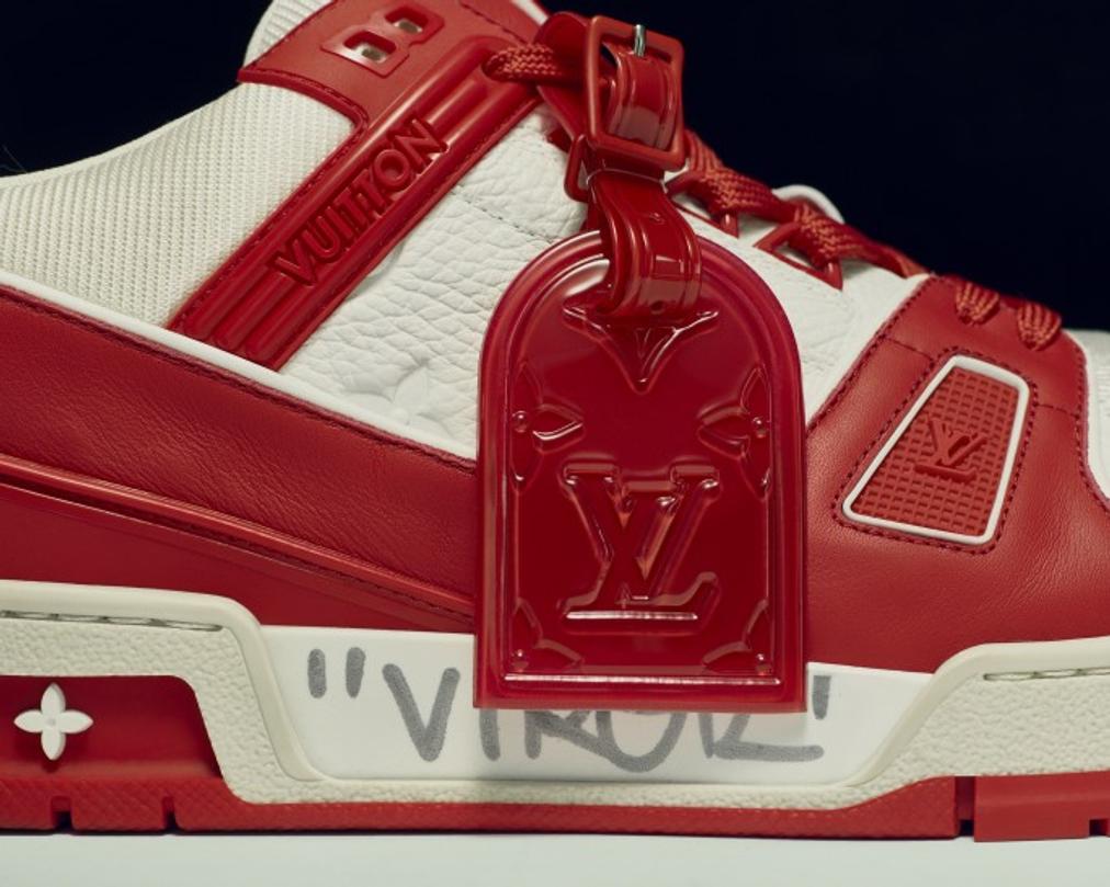 Pour cette vente baptisée ‘By « Virgil »/Louis Vuitton & (RED)’, l’objet de tous les désirs est un prototype des LV Trainers imaginées par le directeur artistique Virgil Abloh. Présenté pour la première fois dans le cadre de la collection masculine Printemps/Eté 2019, le modèle se pare de rouge et de blanc et fait écho au code couleur de (RED), association impliquée dans la lutte contre le sida.