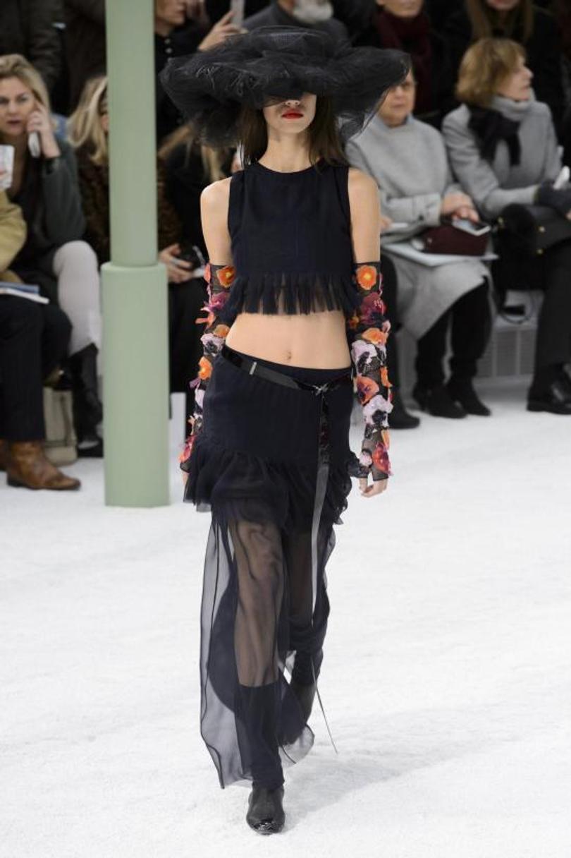 Le maquillage des tops Chanel, quant à lui, était nude, relevé d’un rouge à lèvres rosé.