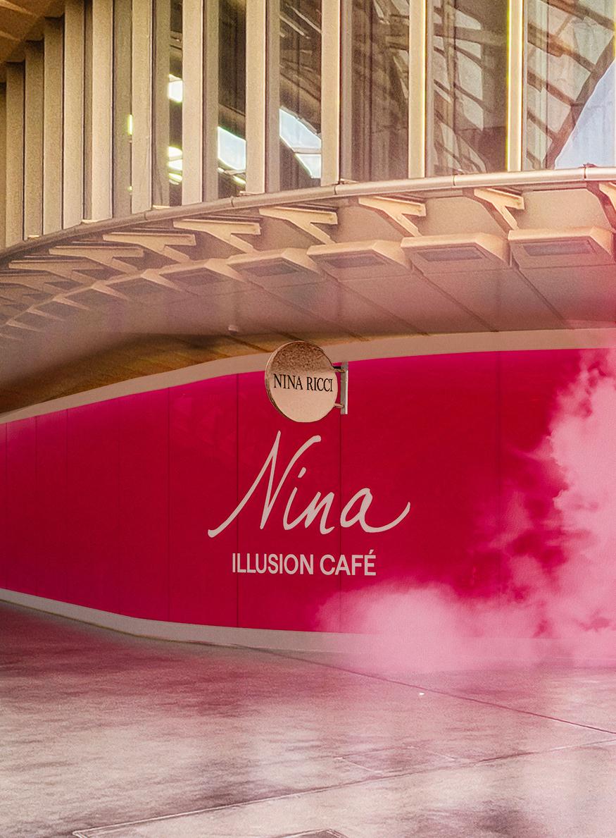 Niché sous la canopée du très passant quartier de Châtelet les Halles, le Nina Illusion Café se veut incarner l’esthétique de la dernière fragrance de la marque, développée sous licence avec Puig. Pour ce faire, la griffe a prévu de miser sur une scénographie immersive grâce à un décor construit autour d’une réplique géante du flacon en forme de pomme, design fil rouge de la ligne de parfums Nina.