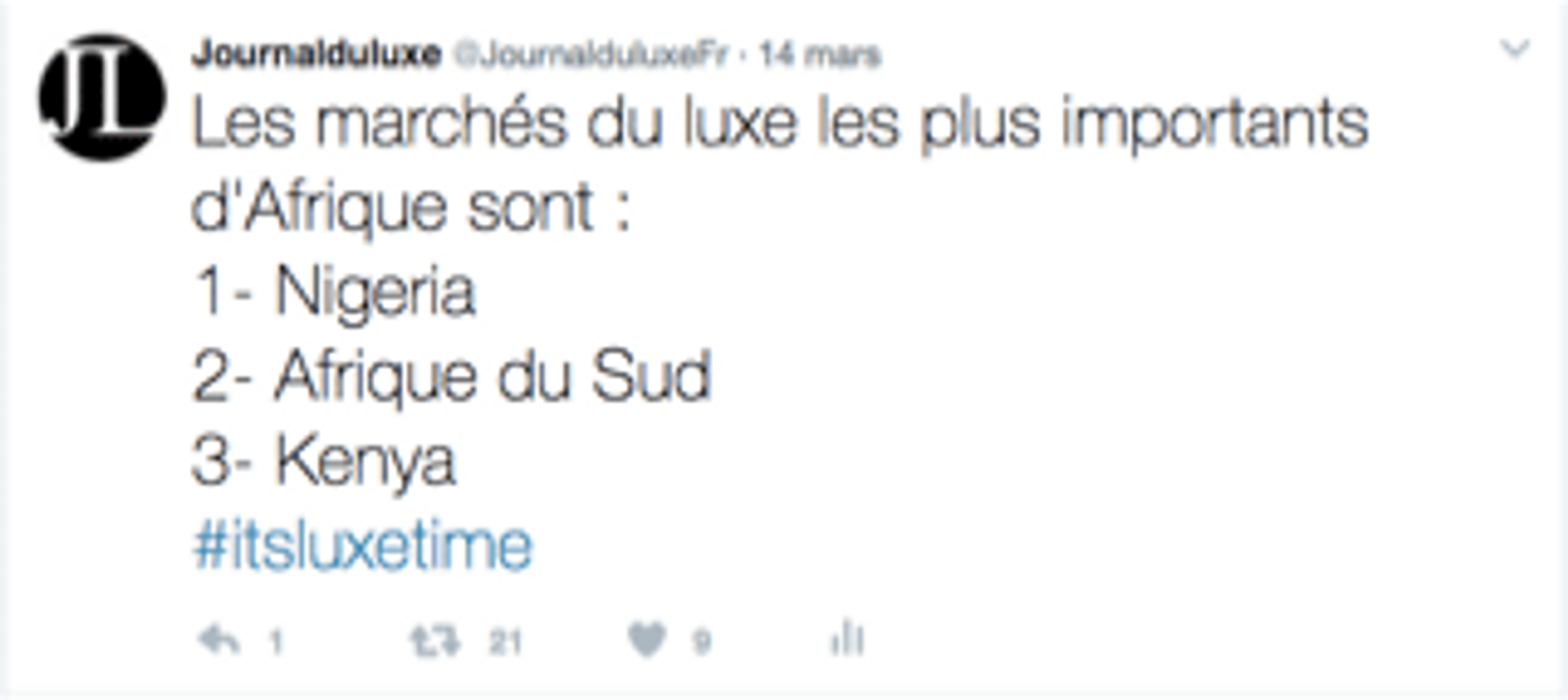 80% des achats de produits de luxe effectués par la population africaine sont faits hors du continent. Néanmoins, de plus en plus de jeunes marques locales émergent sur la scène internationale. Il s’agit d’une opportunité pour les Maisons de luxe et pour les marques, notamment européennes, de s’associer à ces dernières pour les aider dans leur développement et se nourrir de leurs connaissances des marchés locaux.