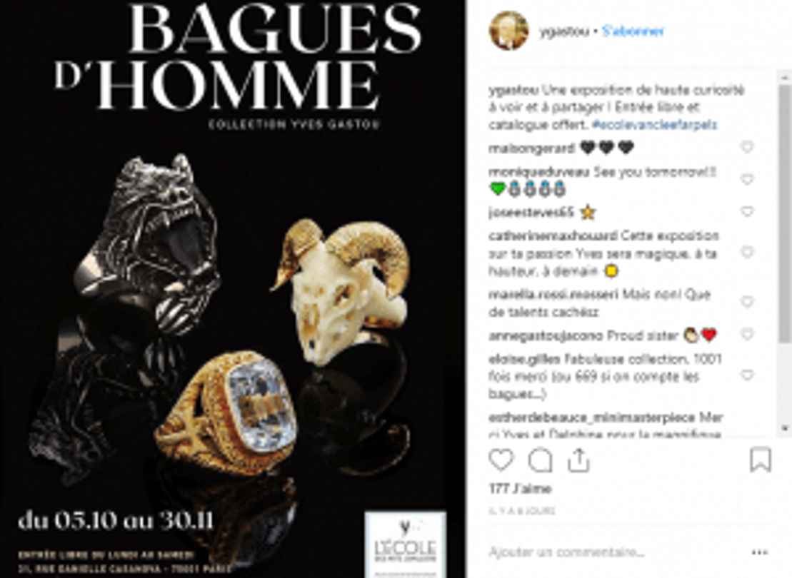Quand certains veulent en porter pour célébrer un événement, à l’instar d’Antoine Griezmann et de son envie d’obtenir une bague de champion du monde, d’autres la portent pour rappeler la grandeur de l’évêque à qui l’on baise la main à la fin d’une messe, comme Yves Gastou, antiquaire et collectionneur. Fasciné par ce monde « d’hommes qui ont le droit de porter des bijoux », il développe dès l’adolescence une passion pour ces ornements pourtant très décriés par la gente masculine à l’époque. Le résultat de cette rébellion adolescente ? 669 bagues, collectées depuis plus de 30 ans, et exposées en ce moment à l’Ecole des arts joailliers de Paris en collaboration avec la Maison Van Cleef & Arpels.