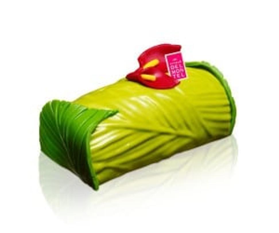 Pierre Hermé propose une véritable bûche de Noël, tant dans sa préparation que dans son format. Il a composé sa création d’un biscuit macaron chocolat, d’un biscuit moelleux au chocolat, et d’une mousse et d’une ganache au chocolat pure origine Trinidad domaine Gran Couva.