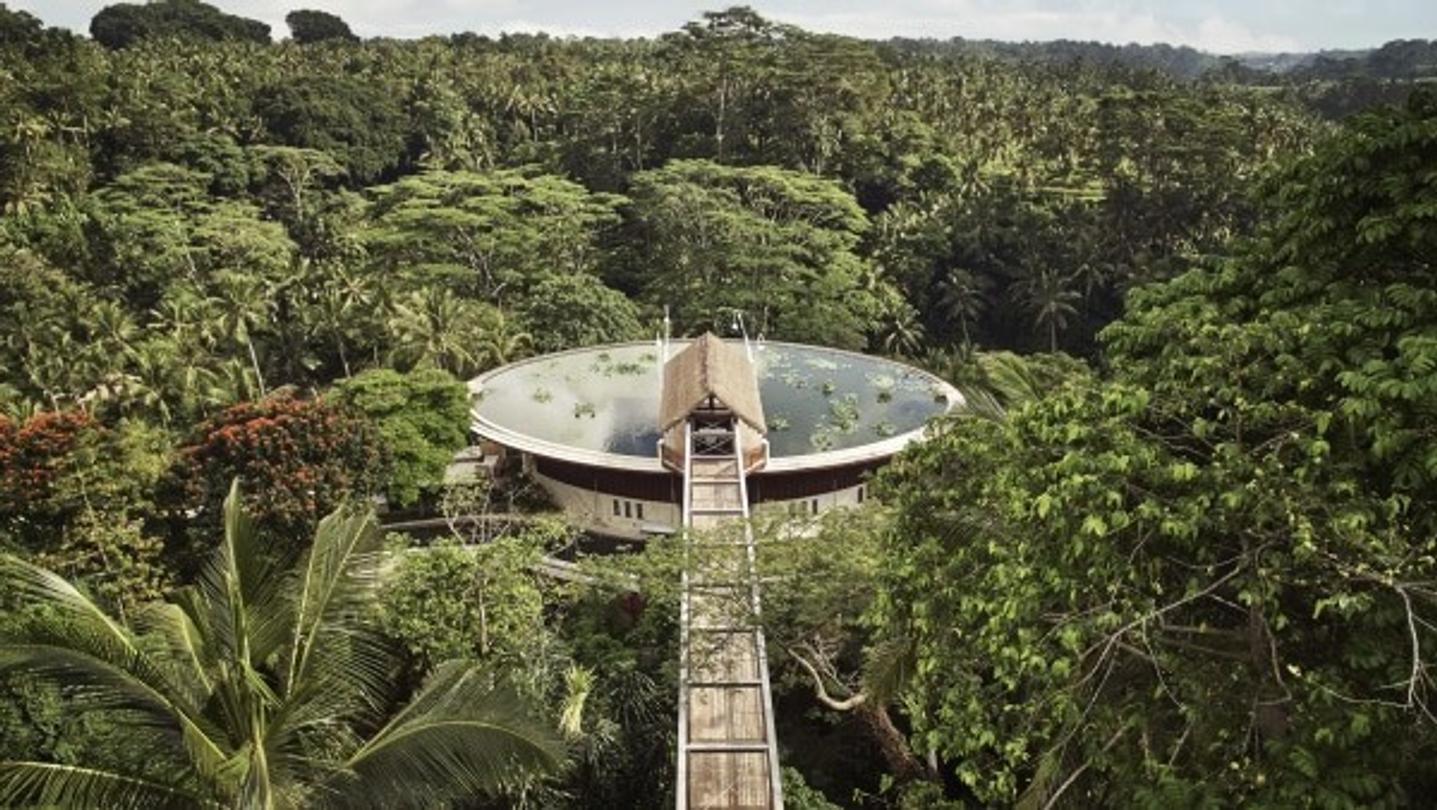 Un luxueux complexe dissimulé dans la forêt tropicale d’Ubud en Indonésie se distingue cette année. Doté de bassins aux nénuphars et d’un spectaculaire pont suspendu sur son toit terrasse, il a été élu meilleur hôtel de 2018 par les lecteurs du magazine américain Travel + Leisure.