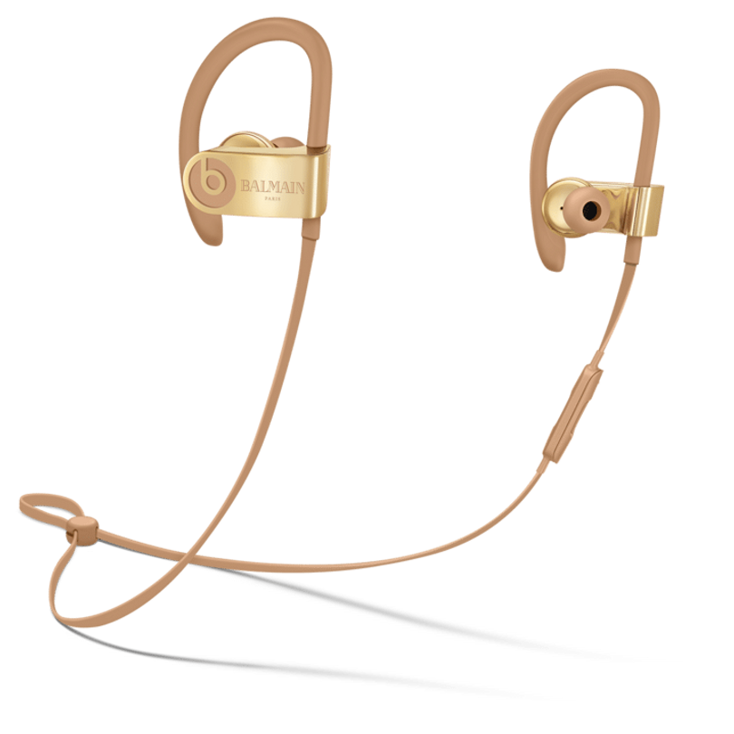Balmain a réinterprété deux modèles phares Beats By Dre pour une édition spéciale. Ainsi ce sont les écouteurs Powerbeats3 sans fil et le casque Beats Studio qui ont été retravaillés par le Directeur Artistique de la griffe parisienne, Olivier Rousteing.