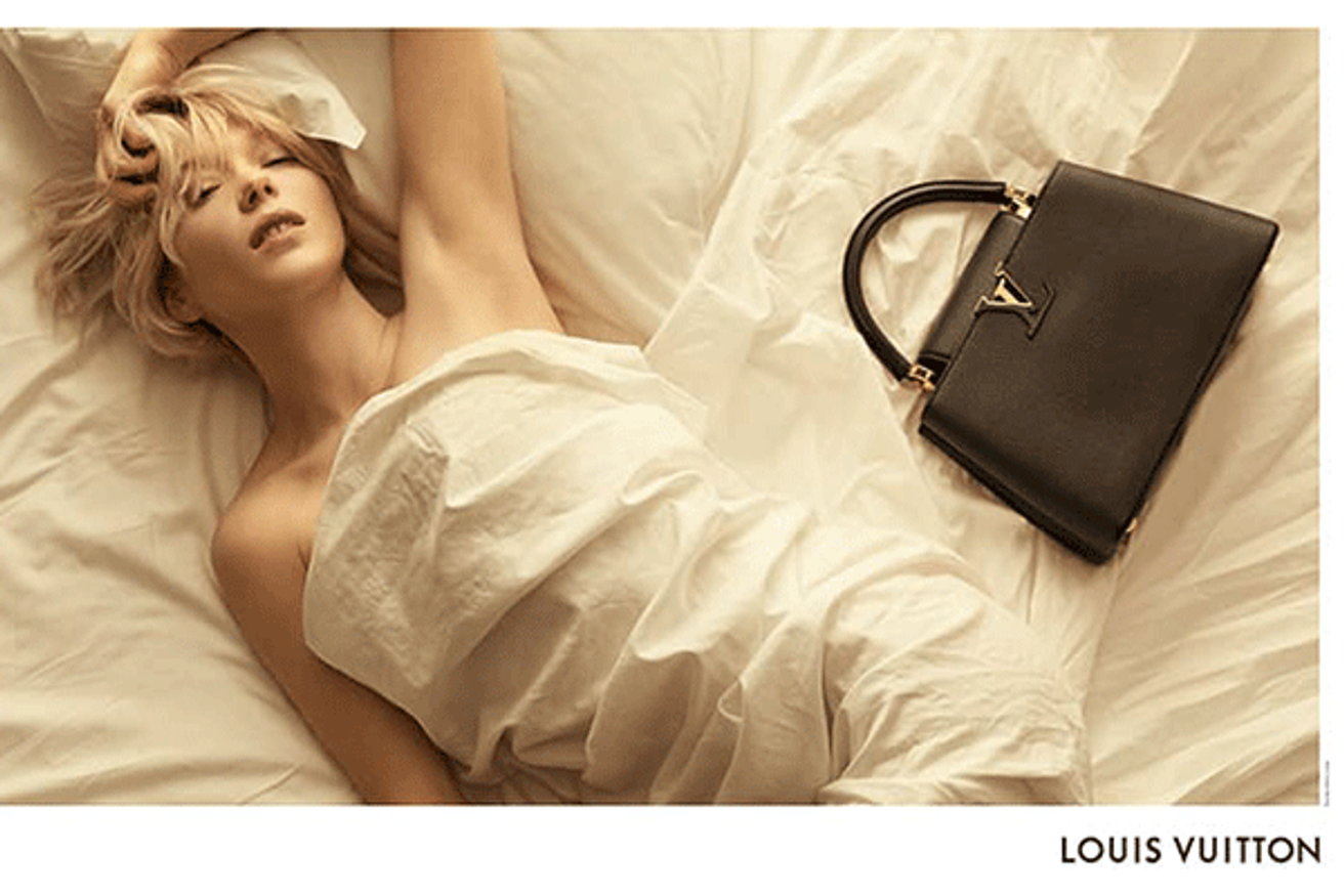Le décryptage de cette campagne emprunte aux codes de l’iconique. La direction artistique, d’abord, revisite le dernier shooting, « The last setting« , de l’étoile éternelle d’Hollywood, Marilyn Monroe. Le concept en lui même emprunte à la phrase mythique de l’actrice américaine : le « je ne porte pour dormir que Chanel N°5 » est symboliquement remplacé par le sac Capucines… Egérie iconique et volcanique, Léa Seydoux – héroïne du dernier blockbuster « male gaze » James Bond – est ici shootée par un photographe tout aussi culte, Steven Meisel. Une série efficace à défaut d’être audacieuse.