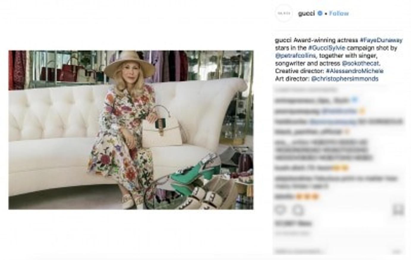 Faye Dunaway devient une Gucci girl. La star hollywoodiennes de 77 ans a été recrutée par la maison italienne pour être le visage de la campagne #GucciStyle du sac Sylvie, aux côtés de l’actrice et musicienne française SoKo.