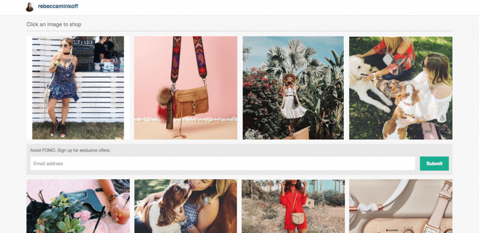 A l’instar de Rebecca Minkoff avec Like2buy, où le lien de sa biographie Instagram renvoie à une plateforme rassemblant toutes les dernières photos publiées et redirige vers son e-shop lorsqu’on clique.