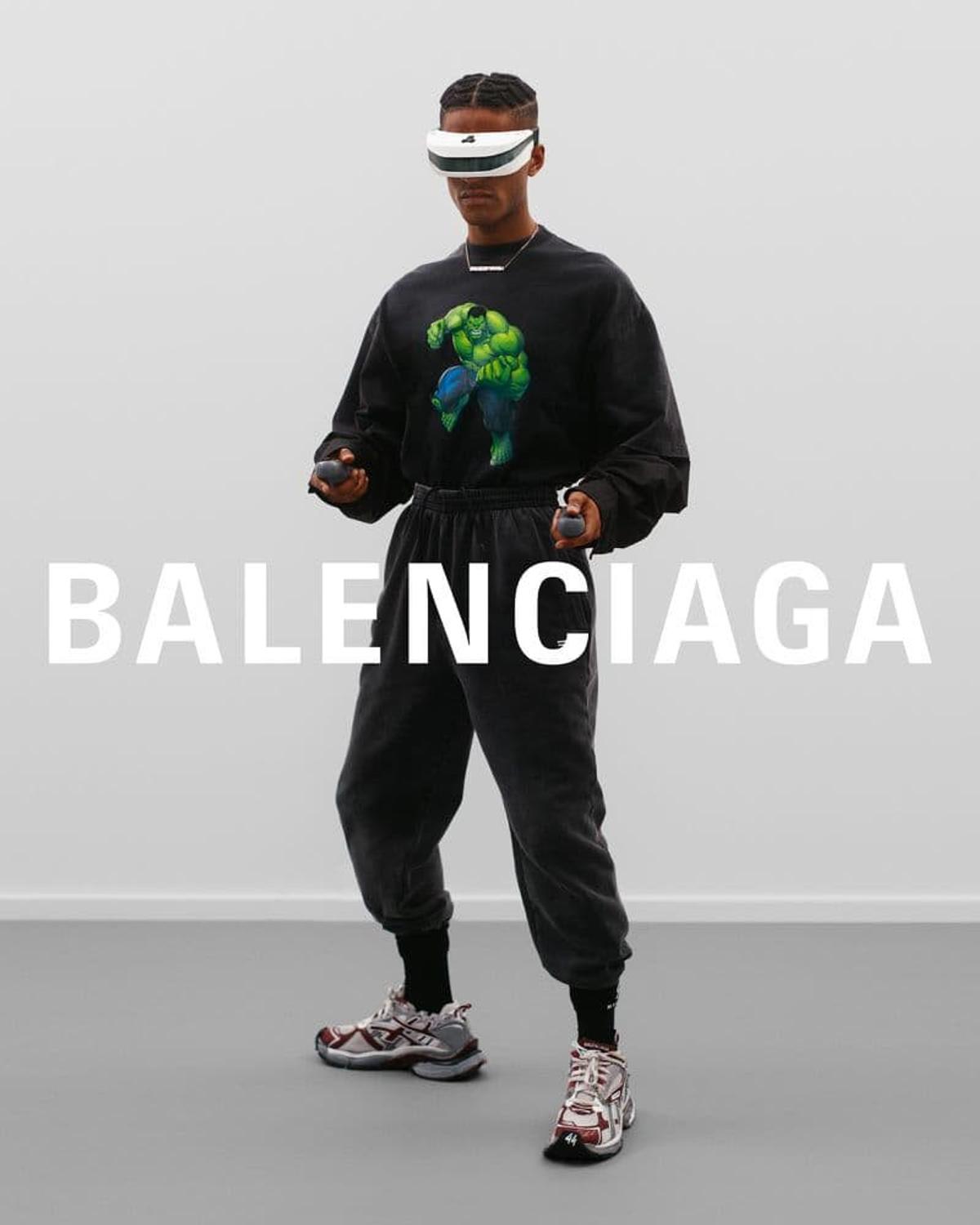 2021 marque la volonté du luxe d'imposer sa vision du digital, parfois même en allant contre le bruit des réseaux sociaux, de Chloé à Bottega Veneta. Aujourd'hui, c'est au tour de Balenciaga de porter un regard ironique sur ces prisons mentales que peuvent représenter les nouveaux mondes virtuels (VR).