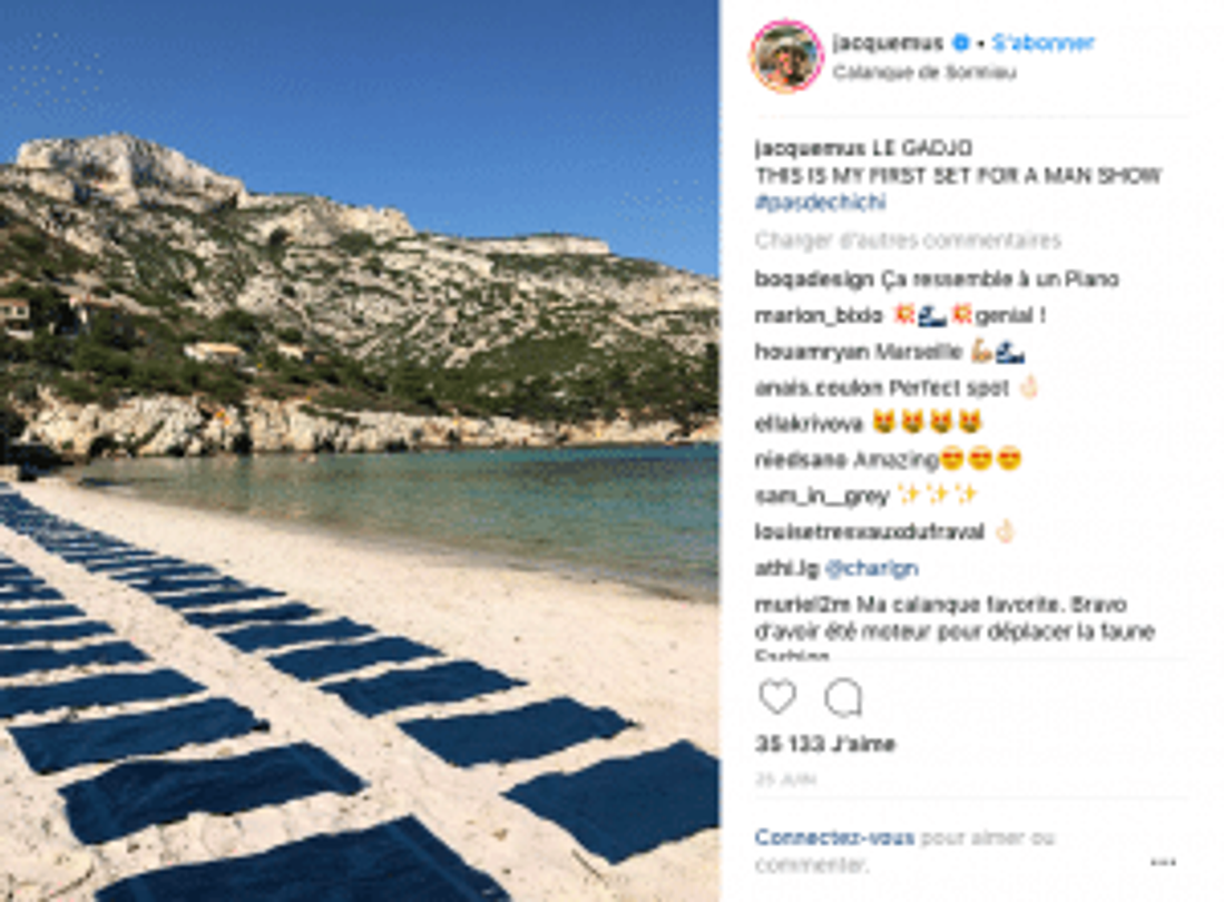 Bien loin des images parfaitement léchées des maisons de luxe traditionnelles, Jacquemus impose un style cool, simple, provincial à souhait. Les photos en pleine nature viennent se mêler aux croquis de mode et aux soirées mondaines. Rien n’est trop ou pas assez. C’est à travers un langage libre et multiple que Jacquemus s’exprime; langage qui est d’ailleurs celui des réseaux sociaux et de sa génération #Nofilter.