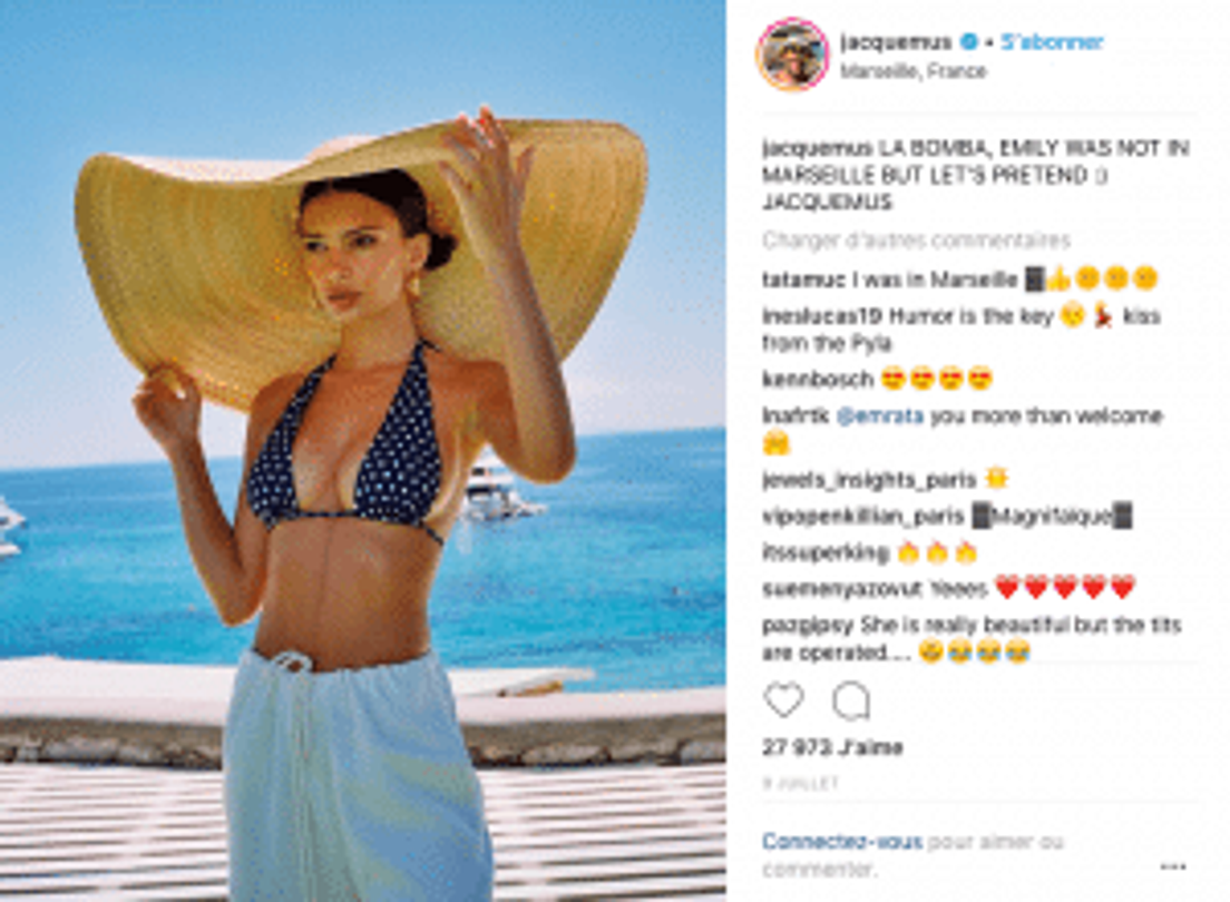 En effet, la marque Jacquemus est incarnée avant tout par le charisme de son créateur, et sa stratégie de personal branding paye. Elle crée un climat d’empathie avec les audiences et démontre une volonté de démocratiser, voir désacraliser le vêtement ou accessoire de luxe pour le rendre plus compréhensible, humain et social.