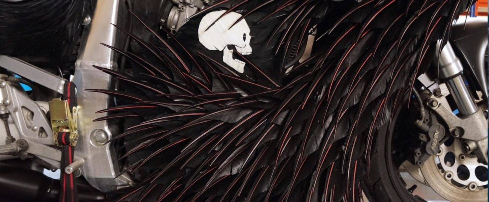 Les tatouages apposés sur son cou pourrait laisser croire que Maxime Leroy est membre d’un groupe de Rock’n’roll. Pourtant, ce personnage atypique exerce une profession beaucoup plus « douce » : celle de la plumasserie.