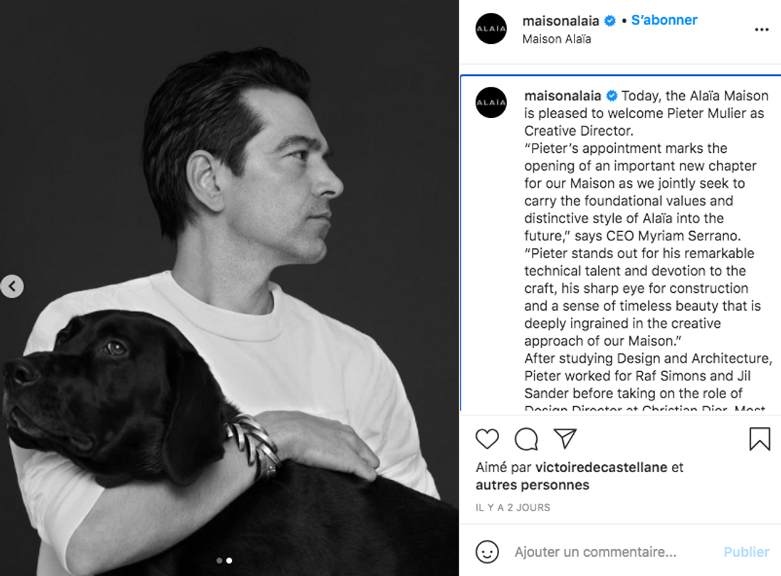 Diplômé de design et d’architecture, Pieter Mulier aura donc pour rôle de perpétuer l’héritage d’Azzedine Alaïa tout en ancrant la marque dans son époque. Un défi qui relève du « rêve absolu » comme l’a déclaré le créateur, collaborateur de longue date de Raf Simons aux côtés duquel il a successivement oeuvré chez Jil Sander, Christian Dior ou encore Calvin Klein.