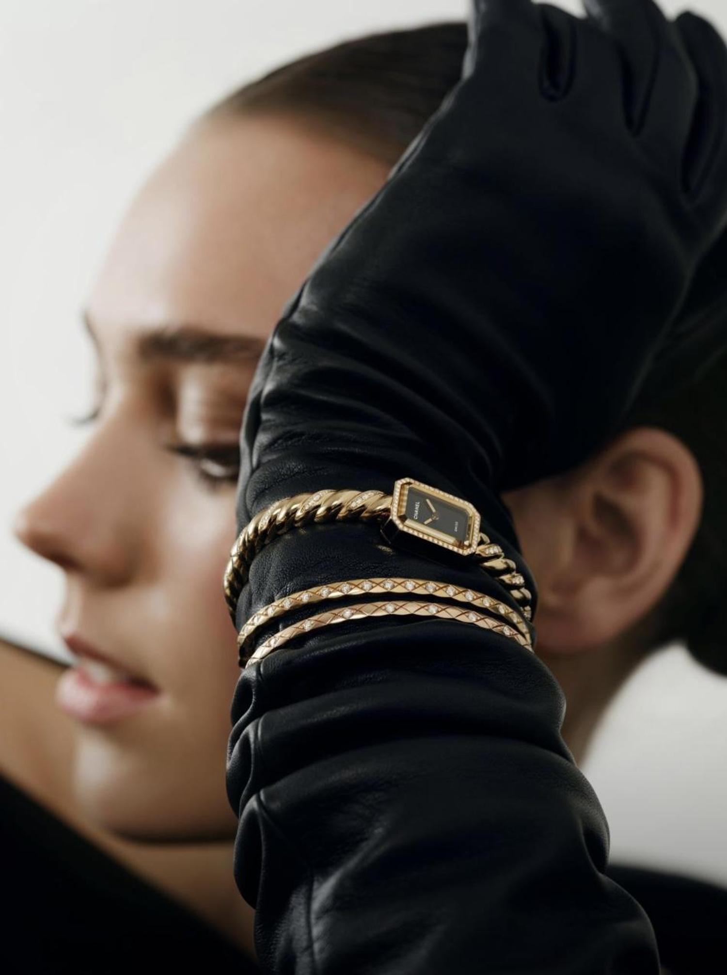 Sous l’impulsion d’Arnaud Chastaingt, Directeur du Studio de Création Horlogerie, le galon, ce ruban que Gabrielle Chanel posait sur ses tailleurs pour structurer la silhouette et en tenir la ligne, devient un jonc rigide en or jaune 18 carats : torsadé, dessiné et pensé comme un contour qui épouse le poignet.